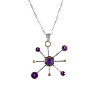 Many different metalsmithing techniques are combined in the creation of Kathleen’s work. She predominantly uses fabricated forms of sterling silver and/or high-karat gold, incorporating gemstones, to design her collections.